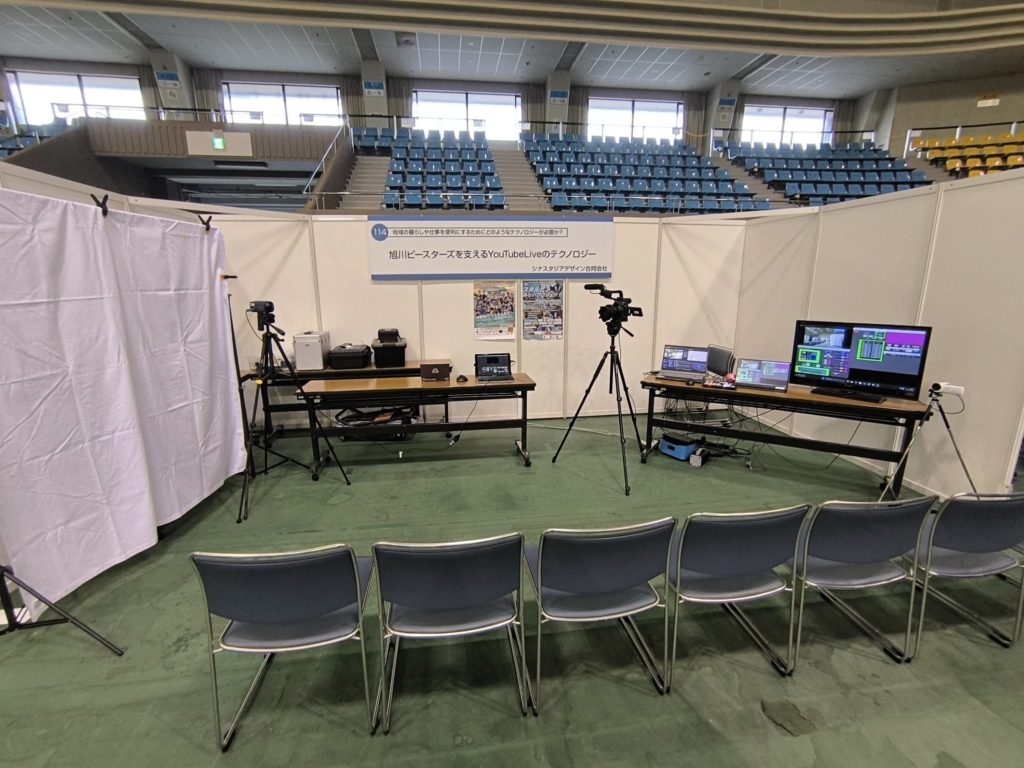 当社は地域の課題ITの力で解決することをメインテーマに、旭川ビースターズで行われているYouTubeライブの体験とシステムの紹介を行いました。